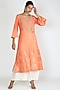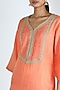 Featuring a peach tunic in silk and cotton base with round butta and aari embellished neck. This contains only one piece.