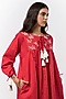 Featuring a crimson red gathered dress in linen base with hand embroidery. Accentuate it with minimal jewellery and heels for evening look.