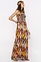 Featuring a multi-colored bralet maxi dress in silk uzbek ikat base.
