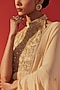 Featuring a beige gown in satin tissue organza base with embroidery. Style it with diamond studs, a sleek clutch, and strappy heels for a cocktail, sangeet or reception look.