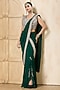 Bottle Green Georgette Embroidered Draped Saree Set
