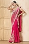 Featuring a hot pink draped saree in georgette base with an attached pallu and embroidery. It is paired with an embroidered silk dupion cape sleeves blouse. Accentuate it with statement jewellery and metallic heels for a glamorous look, perfect for cocktail parties, evening receptions or festive celebrations.