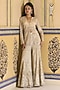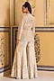 Featuring an ivory jacket in net base with embroidery. It is paired with a dupion bralette and net embroidered flared sharara pants. Accentuate it with zircon or swarovski jewellery and heels for your wedding or sangeet ceremony.