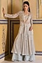 Featuring a powder blue jacket in net base with pearl and cutdana hand embroidery. It is paired with net embroidered sharara pants and a dupion bustier. Accentuate it with zircon or swarovski jewellery and embellished heels for a wedding or sangeet ceremony.