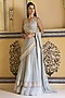 Featuring a powder blue draped skirt saree in chiffon and organza base with embellishments and an attached pallu. It is paired with a dupion bustier. Accentuate it with zircon or swarovski jewellery and embellished heels for your sangeet or wedding ceremony.