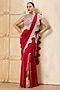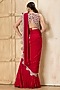 Featuring a red draped saree in georgette base with an attached pallu, hand embroidery and side slit. It is paired with an embroidered silk dupion bustier. Accentuate it with statement jewellery and metallic heels for a glamorous look, perfect for cocktail parties, evening receptions or festive celebrations.