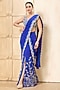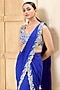 Featuring a royal blue draped saree in georgette base with an attached pallu, hand embroidery and side slit. It is paired with an embroidered silk dupion bustier. Accentuate it with statement jewellery and metallic heels for a glamorous look, perfect for cocktail parties, evening receptions or festive celebrations.
