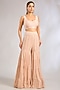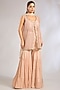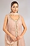 Featuring a taupe jacket in tulle base. It is paired with a silk dupion blouse, crushed chiffon sharara pants and a chiffon dupatta. Accentuate it with zircon jewellery and heels for a festive occasion, sangeet, wedding or sangeet ceremony.