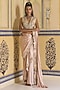 Taupe Georgette Hand Embroidered Draped Skirt Saree Set