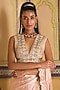 Featuring a taupe draped skirt saree in georgette base with an attached pallu and hand embroidery. It is paired with a dupion sleeveless blouse having a deep neckline, scallop embellishments and side-cuts detail. Accentuate it with swarovski or zircon jewellery and embellished heels for a sangeet or wedding or ceremony.
