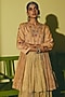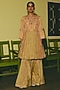 Featuring an antique gold and soft green kurta in tissue base with resham, sequins, cutdana, beads and floral motifs hand embellishment. It is paired with sharara. Accentuate it with chandbali earrings, an embroidered clutch and wedges for a graceful ethnic look, perfect for weddings, sangeet or grand festive occasions.