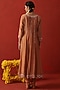Featuring a cinnamon-brown anarkali in chanderi base with floral, resham, cutdana and sequins embroidery. It is paired with churidar pants. Accentuate it with dangler earrings and heels for a festive occasion or pooja ceremony.