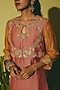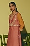 Featuring an earthy terracotta waistcoat-style kurta in chanderi base with applique and gota work. It is paired with a churidar. Accentuate it with jhumkas and mules for an easy festive look, perfect wear for festive gatherings or pooja ceremony.