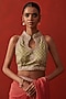 Featuring a green blouse in bandhani silk base with gota, marodi, resham and thread embroidery, including a halter neckline. Accentuate it with a saree, dangler earrings and heels for a festive occasion or sangeet ceremony.