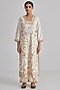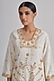 Featuring an ivory kurta in brocade silk base with hand embroidery. It is paired with pants. Accentuate it with statement earrings and heels for a festive look or family gathering.