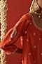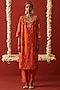 Featuring an orange kurta in silk base with motifs, marodi, sequins and beads hand embroidery. It is paired with pants. Accentuate it with dangler earrings and heels for a festive occasion or pooja ceremony.