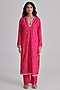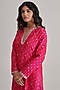 Featuring a pink kurta in brocade silk base with hand embroidery. It is paired with pants. Accentuate it with statement earrings and heels for a festive look or family gathering.