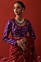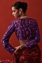 Featuring a purple blouse in silk base with sequins and floral motif hand embroidery, including a round neckline. Accentuate it with a saree, dangler earrings and heels for a festive occasion or sangeet ceremony.