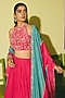 Featuring a rani pink and teal dupatta in silk base with thread, sequins, cutdana and floral embroidery. Accentuate it with a solid kurta set, hoop earrings and embellished juttis for a stylish ethnic look, perfect for a festive occasion or pooja ceremony.
