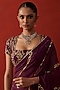 Featuring a wine saree in georgette base with floral jaal, aari, sequins and thread hand embroidery. Accentuate it with a blouse, dangler earrings and heels for a festive occasion or sangeet ceremony.