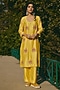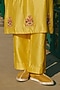 Featuring a yellow kurta in chanderi base with a scoop-neckline, resham, nakshi, sequins and aari floral hand embroidery. It is paired with pants. Accentuate it with jhumka earrings, a delicate pendant necklace, and mules for an easy festive look, perfect for festive gatherings or pooja ceremonies.