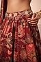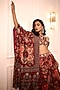 Featuring a maroon floral lehenga in georgette base. It is paired with a net blouse having nakshi, zari, resham, cutdana and mirror hand embroidery, including an embroidered dupatta. Accentuate it with traditional gold jewellery and heels, perfect for weddings, festive functions or cultural celebrations.