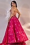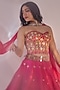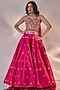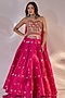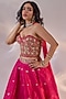 Featuring a pink lehenga in silk base with hand embroidery. It is paired with a georgette corset blouse having beads, sequins, nakshi, zari, thread and mirror hand embroidery and a choker dupatta. Accentuate it with elegant statement jewellery for a regal ensemble, ideal for weddings, sangeet nights, or grand receptions.
