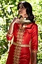 Featuring a scarlet red kurta in dupion silk base with gota patti, dabka, nakshi, and sequins hand embroidery. It is paired with matching pants and a gold satin silk scalloped dupatta.