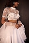 Featuring a white lehenga in satin base with nakshi, zari, zarkan, pearls, resham, cutdana and mirror hand embellishment. It is paired with a net embellished blouse and an organza ruffled dupatta. Accentuate it with diamond jewellery and heels, perfect for receptions, engagement parties or modern festive events.
