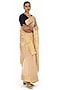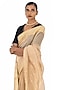 Featuring a beige saree in chanderi silk cotton base with a gold zari border. This timeless piece is ideal for various occasions and easy to style with different accessories.
