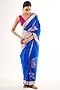 Raw Mango presents a blue saree in varanasi silk brocade base with cherry blossom branches detail in golden zari. Style it with a plain blouse for a festive, sangeet or engagement ceremonies.
