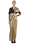 Featuring a brown saree in Varanasi silk brocade base with motifs that draw from the stripes of the Bengal Tiger and a heavy palla. This timeless piece is ideal for various occasions and easy to style with different accessories.