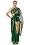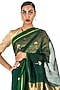 Featuring a deep green saree in chanderi silk cotton base with floral motifs with an accent of green and gold 'meena' on the pallu. The sari features a gold zari border. This timeless piece is ideal for various occasions and easy to style with different accessories.