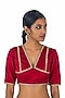 Raw Mango presents a mesmerizing Maroon Blouse that captivates with its elegance. The eye-catching piece is crafted in satin silk with a V-neckline and hand embroidery. Accentuate it with a saree, statement jewellery, heels and a potli bag for weddings or festive occasions.