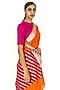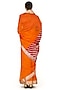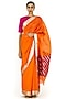 Featuring an orange saree in chanderi silk base with a gold border a striped palla. This timeless piece is ideal for various occasions and easy to style with different accessories.