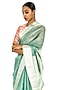 Featuring a pale blue saree in chanderi silk base with a silver zari border. This timeless piece is ideal for various occasions and easy to style with different accessories.