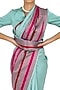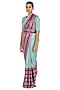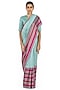 Featuring a pale blue saree in mashru silk base with stripes along the border in red and white. This timeless piece is ideal for various occasions and easy to style with different accessories.
