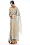 Raw Mango features a captivating Pale Blue Saree exuding elegance, crafted in tissue silk. This timeless piece is perfect for various occasions and versatile to style with different accessories, allowing you to create your own distinctive and fashionable look.