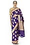 Featuring a purple saree in varanasi silk brocade base with flora and fauna bootas that draw from the inlay work that is woven using the elaborate Kadwa technique, where each motif is woven separately. This timeless piece is ideal for various occasions and is easy to style with different accessories.