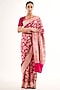Raw Mango presents a red blouse in mota silk twill base with aari embroidery. Style it with a saree, a clutch and heels for a cocktail, sangeet or engagement ceremonies.