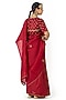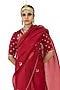 Featuring a red saree in sheer organza and silk base with all-over zardozi and aari hand-embroidered floral butis in gold and silver. This timeless piece is ideal for various occasions and easy to style with different accessories.