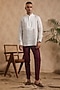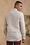 Featuring a beige kurta shirt in pure linen base with natural shell buttons, a checkered yoke and kantha hand stitch details.