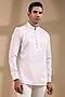 Featuring a blush pink kurta shirt in pure supima cotton base with natural shell buttons and a mandarin collar.