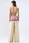 Featuring an ivory top in organza and silk tencel base with a halter neck and bead embroidery, including floral printed hem. It is paired with pleated flared pants. Accentuate it with statement earrings and block heels for evening soirees or destination celebrations.
