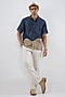 Featuring a dark blue shirt in tencel denim base with a cuban collar, wooden buttons, thread, patchwork and embroidery. Style it with tencel cotton pants and a pair of shoes for a casual outing, get-together, beach or brunch wear.