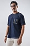 Dark Blue Tencel Denim Patchwork T-Shirt