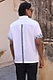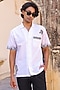 Featuring a white handcrafted shirt in linen, cotton, and tencel base with cuban notch collar, placement print, and subtle thread embroidery. Style it with airy linen pants for a casual look, exuding charm and elegance.