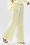 Featuring a yellow oversized shirt in linen base with wooden button closure. It is paired with straight cut pants. Accentuate it with statement earrings and heels for a casual or evening wear.