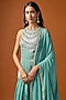 Featuring an aquamarine short kurta in chiffon silk base with zari hand embroidery. It is paired with silk salwar pants and a georgette dupatta having embroidered hemline. Accentuate it with a polki stud earrings, a potli bag and juttis for festive occasions or sangeet ceremony.