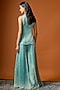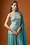 Featuring an aquamarine short kurta in chiffon silk base with zari hand embroidery. It is paired with palazzo pants and a georgette dupatta having embroidered hemline. Accentuate it with a polki stud earrings, a potli bag and juttis for festive occasions or sangeet ceremony.